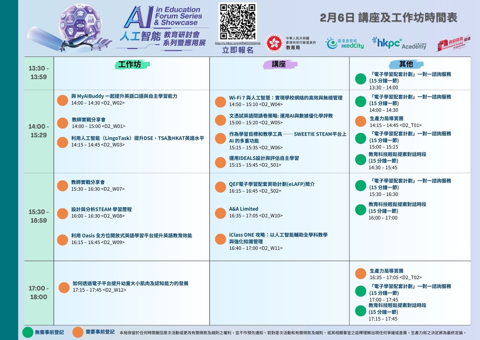 「資助學校推動數碼教育講座系列」支持學校善用人工智能及數碼工具提升教學與學習。根據《2025年施政報告》,教育局從優質教育基金(QEF)撥款20億元,其中5億元用於「『智』啟學教」三年資助計劃,每校最多可獲50萬港元。系列亦涵蓋QEF eLAFP,已資助22個教育科技項目,公帑學校可使用電子禮券, 每個項目最多三年內訂閱資源。此系列為學校深入了解資助機制、規劃AI驅動教育轉型的關鍵機會。
