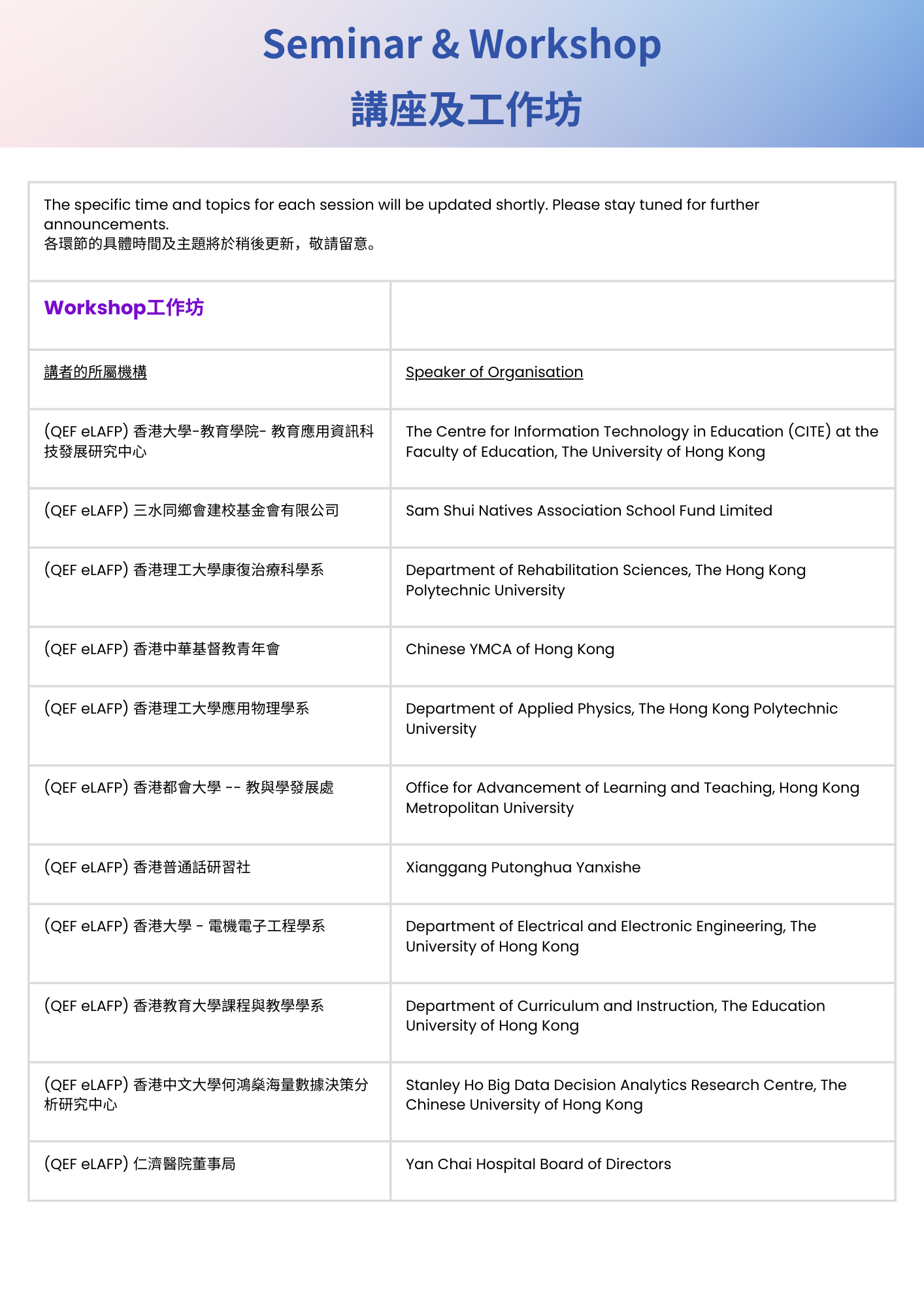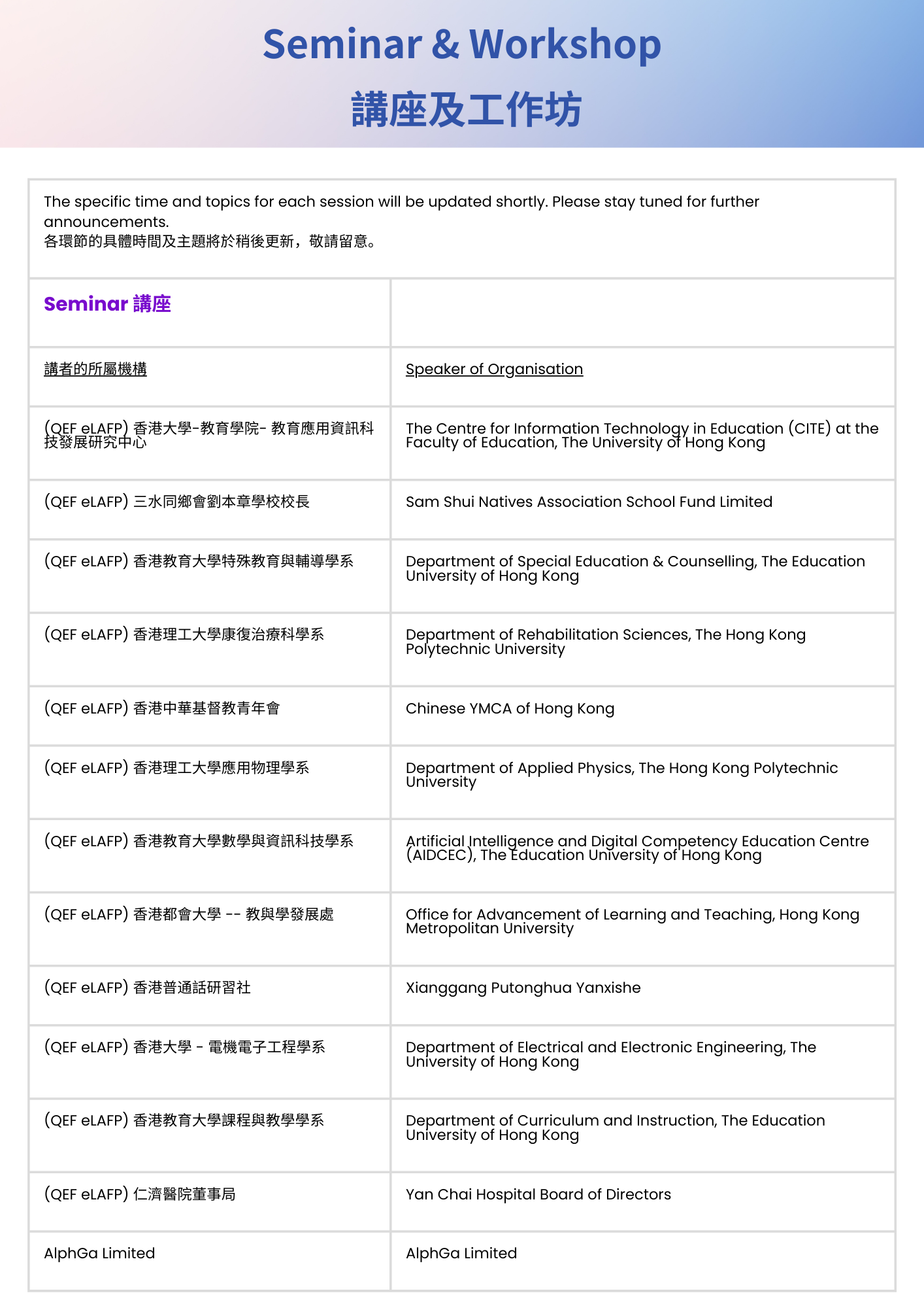 Seminar Series for QEF eLAFP Funding and AI for Empowering Learning and Teaching Funding Programme (『智』啟學教)